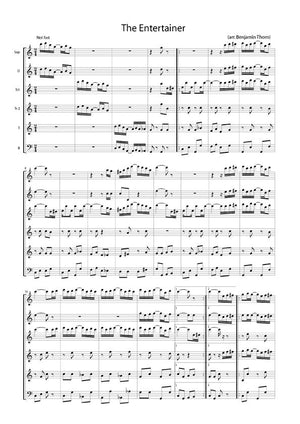 The keyboard rags of Scott Joplin present some interesting scoring challenges for recorders, the most vexing of which is the creation of interesting parts out of the stride bass accompaniments. This particular problem has been solved with a greater or lesser degree of success in Alan Davis's Scott Joplin Album (Novello 120594) and Ross Winter's arrangement of New Rag (Nova NM 301). This new edition of The Entertainer by Benjamin Thorn does a better-than-average job of solving this problem by having all the instruments except the sopranino share in the after-beats. Unfortunately, as tends to the case more often than not, the tenor ends up with a relatively dull part and the bass is forced to be both bass and accompaniment. The main melody lies mostly in the sopranino, frequently doubled at the octave by either a soprano or alto. Because the melody rarely descends into the staff, the result (to my ears, at least) is too shrill to be comfortable. After a couple of hearings with different groups, my recommendation would be that this arrangement should be played by a small ensemble with a sopranino player of above-average ability to minimise intonation problems.