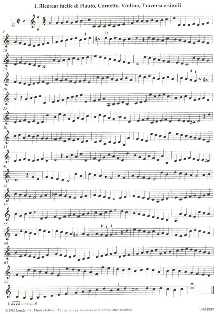 1. Ricercar facile di Flauto, Cornetto, Violino, Traversa e simili