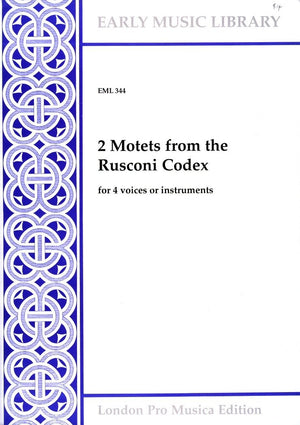 *Two Renaissance Motets* from The Rusconi Codex, a collection of motets written around 1515 in Bolonga of Ferrara. Includes cover notes.