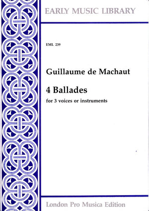 *Four Medieval Ballades.* These 4 ballades are printed from a 16th century edition in the Bibliotheque Nationale in Paris. Machaut uses an AAB form in these pieces.