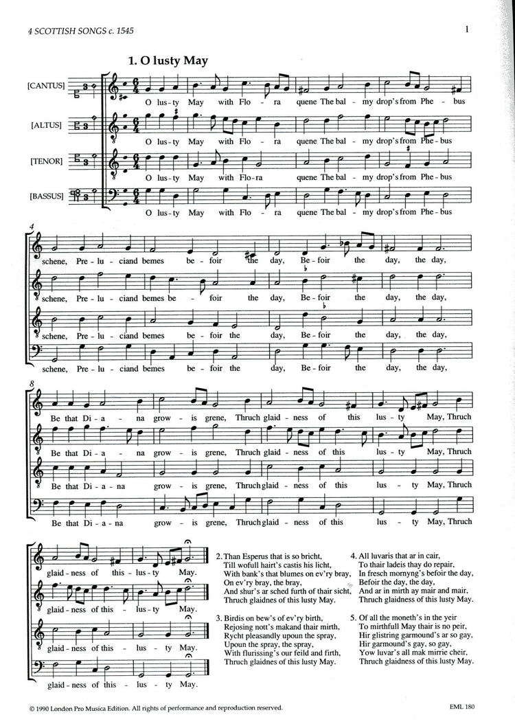 *Four Renaissance Schottish Songs.* Includes lyrics, texts and substantial editorial notes.