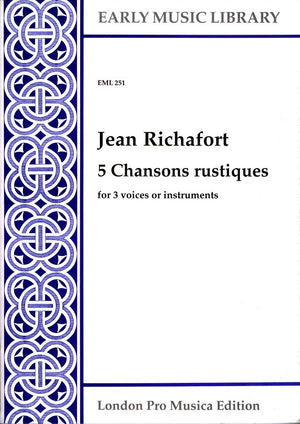 *Five Renaissance Pieces.* These five chansons rustiques are typical of a kind of song which flourishes around the beginning of the 16th century and are most likely based on popular tunes of the day. The melody appears in the tenor part, although all parts use the basic material and there is much imitation.