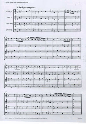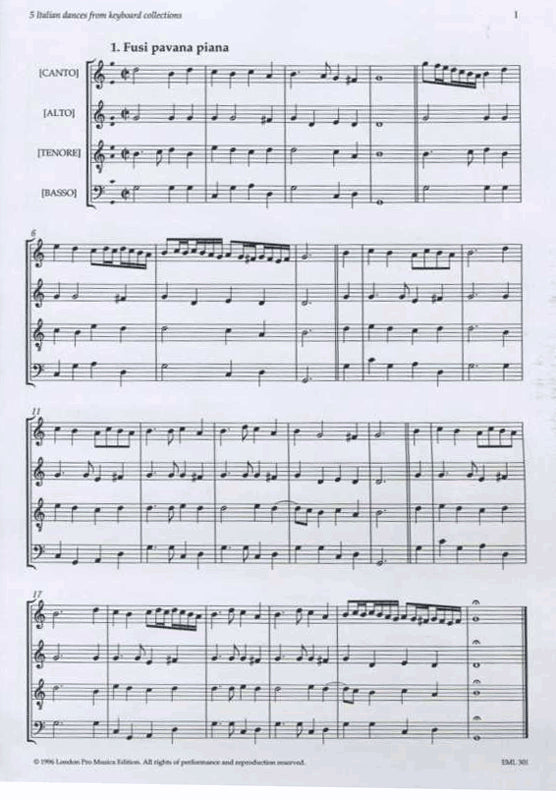 These *Five Renaissance Dance Transcriptions* aim in principle to produce versions that might have survived in partbooks and follow the normal conventions of Italian dance music around 1550.