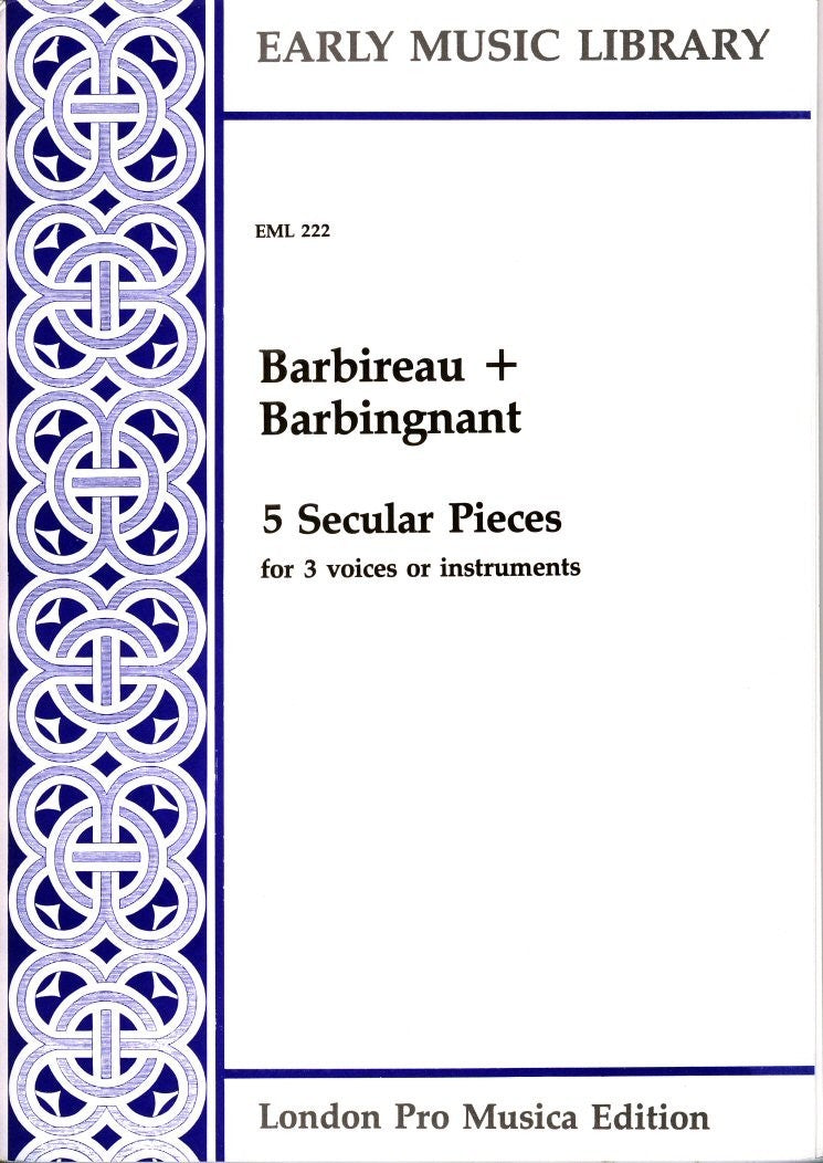 *Five Medieval Pieces.* This publication contains almost all the surviving secular works of 2 relatively obscure 15th century composers. Barbingnant~~~~~s L~~~~~omme banni was extremely well-known in its day. For 3 voices or instruments.