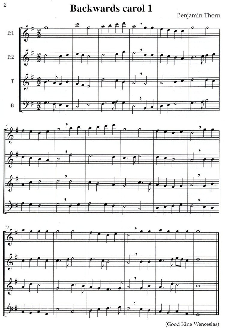 This work consists of two playing scores really useful as the combination of recorders varies and it will be useful to have two scores so that one can change recorders easily without having to change stands. There are carols played backwards (with some altered phrasing and harmonic changes too). Some are played upside down. Then there are various combinations of carols including 'Jack's Jingles': a combination of Jingle Bells' and 'Brother Jack' by Cecile Michels-Thorn. The last six pieces based on In Dulci Jubilo can be played as a set there are more details about the pieces in the booklets. Benjamin Thorn suggests asking audiences to try to recognise the carols used. I think this is an excellent idea especially with those which include a mix of carols They are interesting to study as something different and maybe to use four audience participation if you are looking for the unusual.
