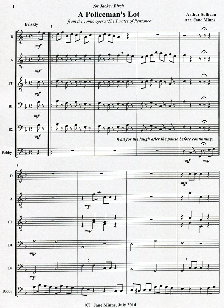 A Policeman's Lot, from "The Pirates of Penzance" for 6 Recorders and Solo Bass Instrument