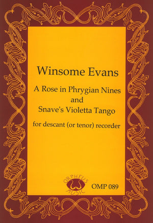 Far more engaging are the two solo soprano works by Winsome Evans. A Rose in Phrygian Nines is, as you might expect, a composition based on the Phrygian mode. That particular modality, as well as its fast, invigorating 7/8 meter, give it an Eastern European feel, although Evans uses ornamentation that seems to be a mixture of Baroque and Irish! The form of the piece might be described as variational, but it is closer to written-out improvisation. Snave's Violetta Tango is similar in design and style. Its tempo is slower and it's in 8/8 meter grouped 3+3+2. Somehow, a most unlikely and delightful tango feel projects through the music.