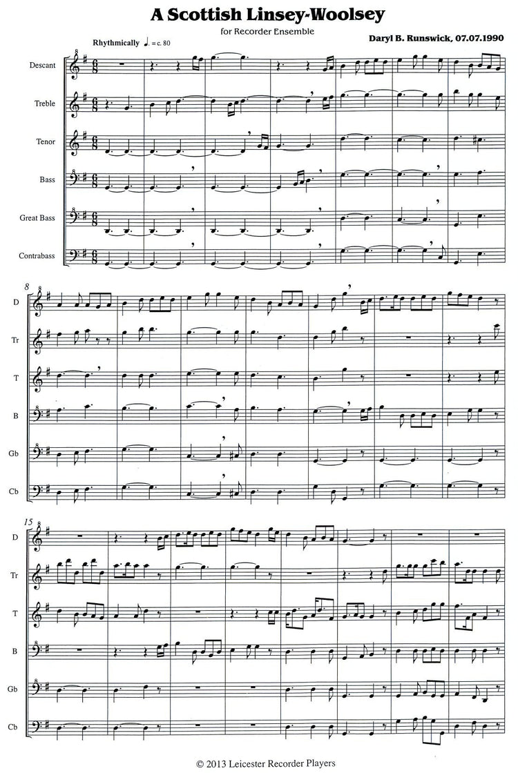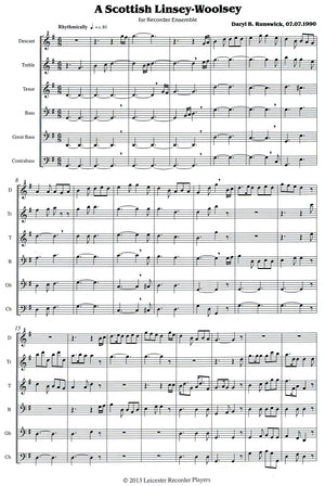 *Nine Scottish Folk Songs* interwoven into a continuous piece for recorder sextet. The folk songs appear in the following order: