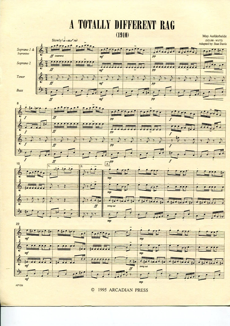 *Jazz Arrangement.* Interesting arrangement for recorder quartet, includes short composer biography, information on the rag, and women in ragtime.