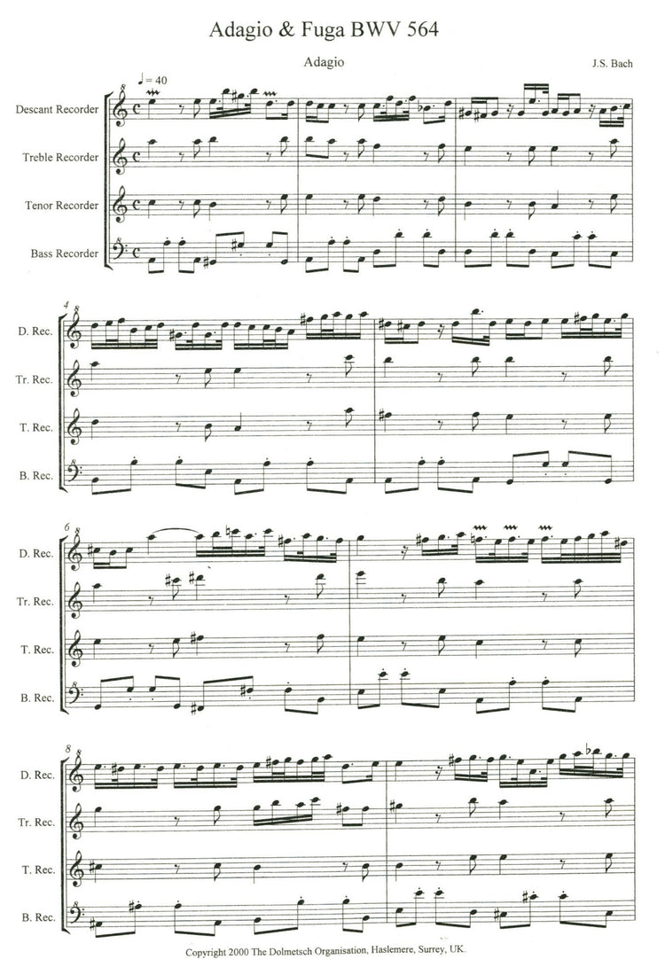 *Two Baroque Movements* arranged for SATB recorder ensemble.