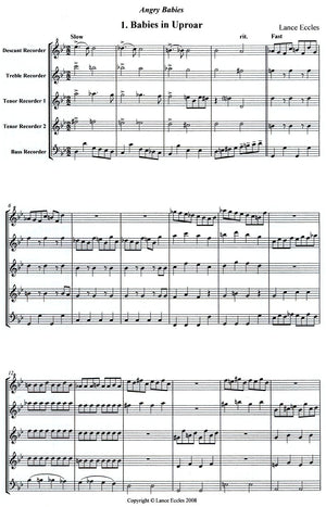 Angry Babies is described in the Orpheus catalogue as 'three nicely dissonant character pieces, which, I suppose is just how angry babies are; 'dissonant'! The three movements are written in Lance Eccles's rhythmic and chromatic style, the first being 'Babies in Uproar. This has a slow introduction with movement mainly in the bass line, before breaking out into fast movement with a calypso-type rhythm in the inner parts and bars of repeated notes. (Are these babies drumming their heels?) The piece gathers