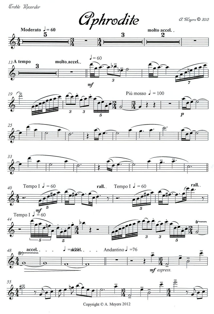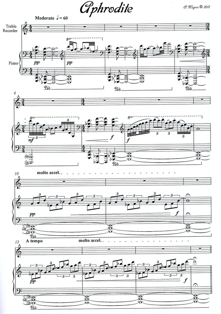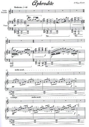 *Contemporary Composition.* This work for treble recorder and piano is inspired by the classical Greek story of Aphrodite. There is no programme as such to this work, but the music paints a picture of reflected mmonlight, dawn and the exquisite emergence of the Goddess. She will be desired by all men, but at her creation she is innocent and the world is unknown to her.