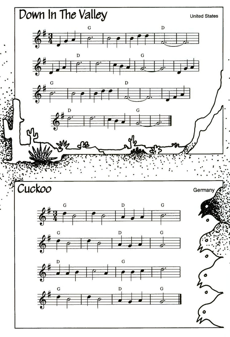 *30 International Folksongs.* Features chord symbols for improvised accompaniment on keyboard or guitar. Includes fingering chart for descant and introduction.