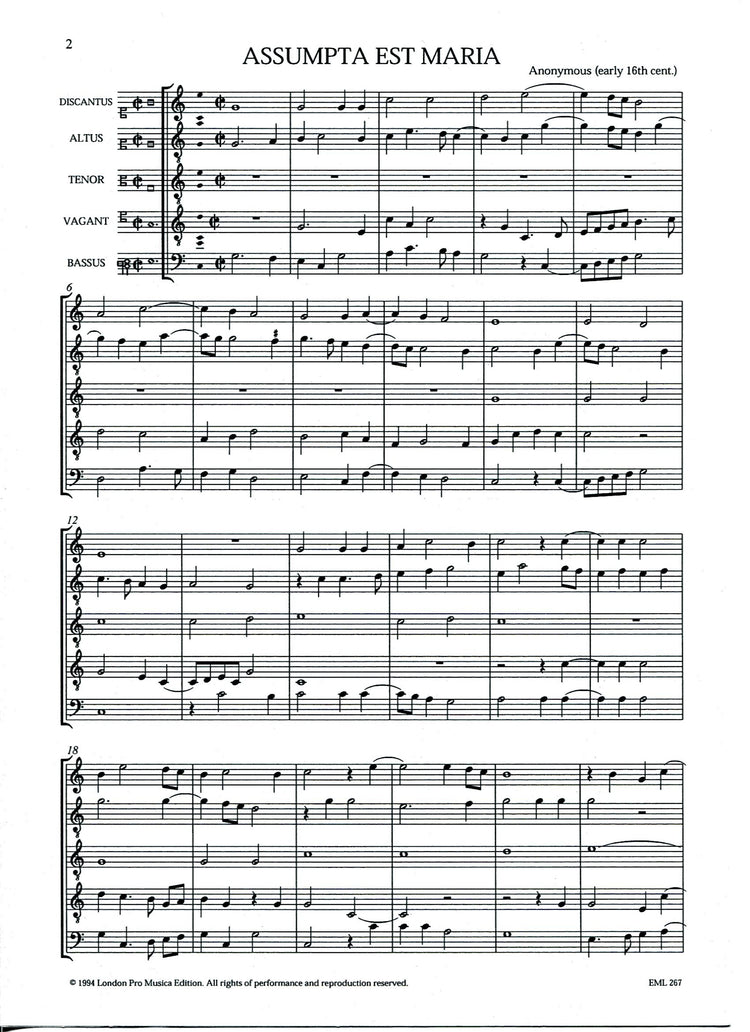 Instrumentation: Descant - Treble - 2 Tenors - Bass (or Descant - Treble - Tenor - Bass)
