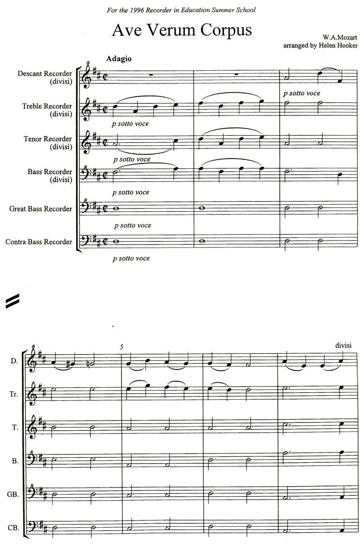 *Sacred Composition - One of Mozart's Most Well Known Songs* arranged for the 1996 Recorder in Education Summer School.