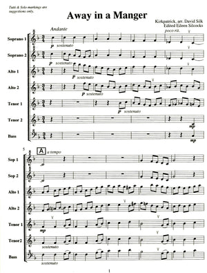 *Famous Christmas Carol* arranged for recorder septet. This is an interesting arrangement with the lower instruments initially taking the melody whilst the descants and altos play a trickling accompaniment. In a subsequent verse the melody and accompaniment roles are reversed.