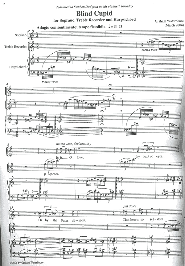 'Blind Cupid; was composed in early 2004. The work is a setting of verses by Matthew Prior (1664-1721) poet and sometime diplomat in the Court of Louis XIV.