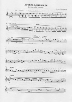 Broken Landscape began as a musical reflection on the Black Saturday bushfires (2009), one of the worst bushfires to occur in Australia, and its impact on local wildlife. Whilst I was composing the piece in 2019, devastating fires began in New South Wales and Queensland killing a massive population of native wildlife and burning more than 3.1 million hectares of bushland. This piece comprises many notated sounds of Australian animals, usually making alert or alarm calls.