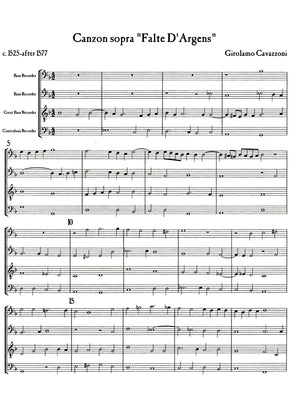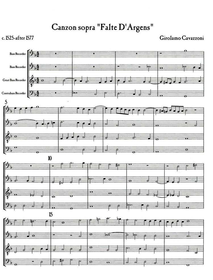 *Renaissanse Canzon* for lower recorder quartet (B/B/GB/CB).