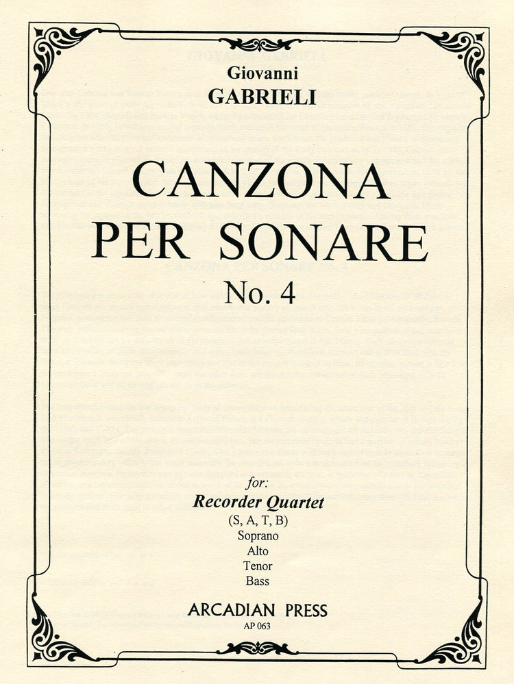 *Renaissance Canzona* for recorder quartet.