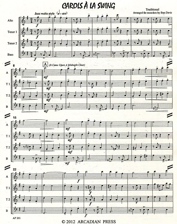 *Three Traditional Christmas Carols* cleverly interwoven into one movement with a jazzy feeling. Includes lyrics and draws on material from It Came Upon a Midnight Clear, The Coventry Carol and Angels We Have Heard On High.