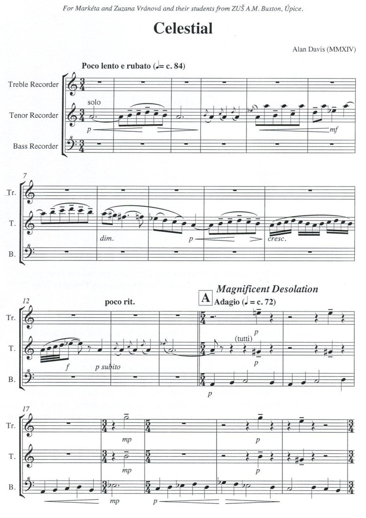 *Contemporary Composition* for recorder trio. Additional instruments extend the ensemble but they mostly double the existing parts with a couple of exceptions. Includes a brief foreword in English with helpful performance suggestions.