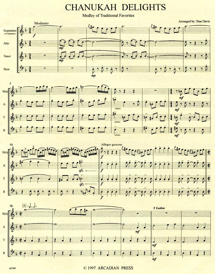 *Medley.* Selection of Jewish songs combined to form single piece. Straightforward arrangement - descant part has a couple of fast passages.