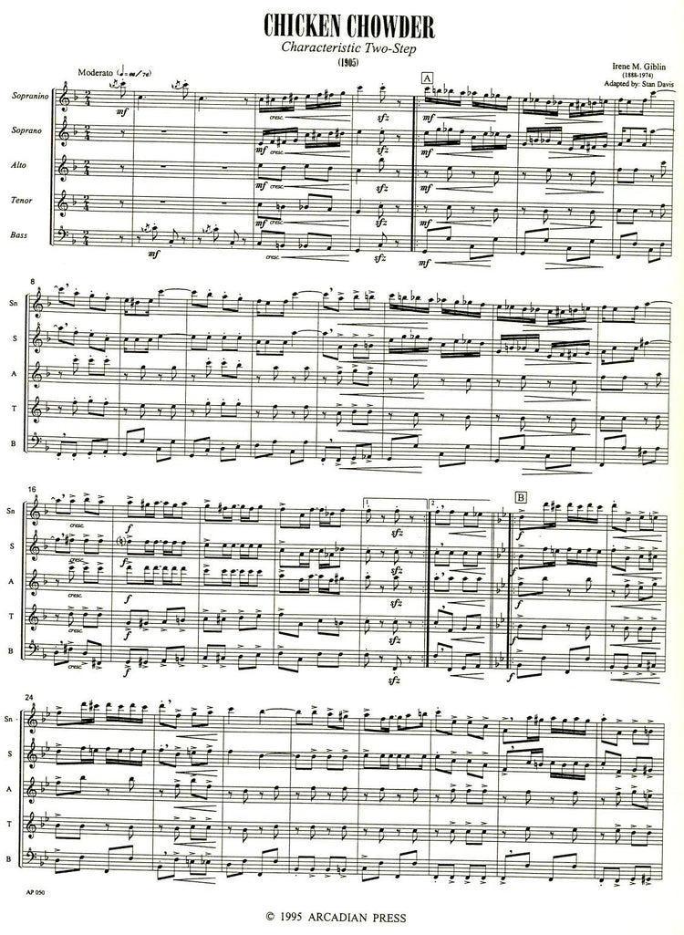 Interesting arrangement for recorder quintet, includes short composer biography, information on the rag, and women in ragtime.