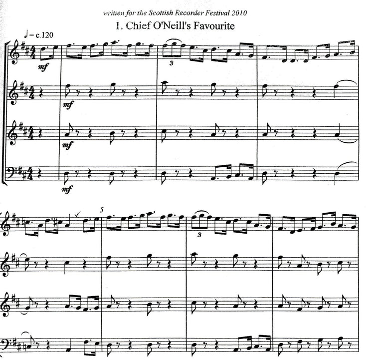 *Five Traditional Irish Reels & Jigs* arranged for SATB recorder choir.