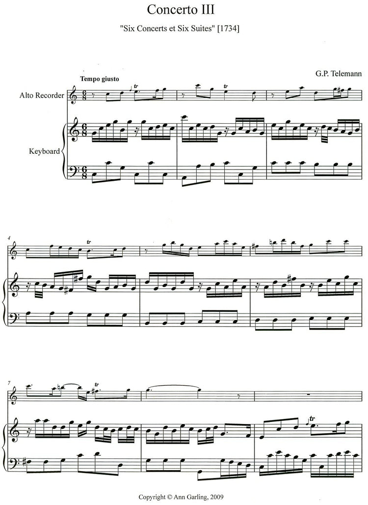 Concerto III from Six Concerts et six suites TWV42:A3 (1734) in a minor