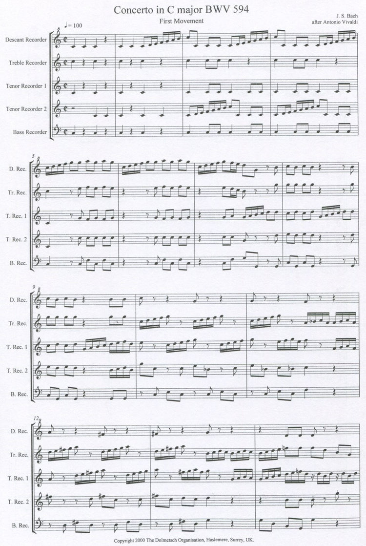 *Traditional Baroque Concerto Movement* after Vivaldi. Arranged for SATTB recorder choir.