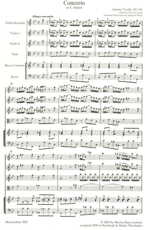 *Concerto for Treble Recorder, Strings & Basso continuo in c minor RV 441*