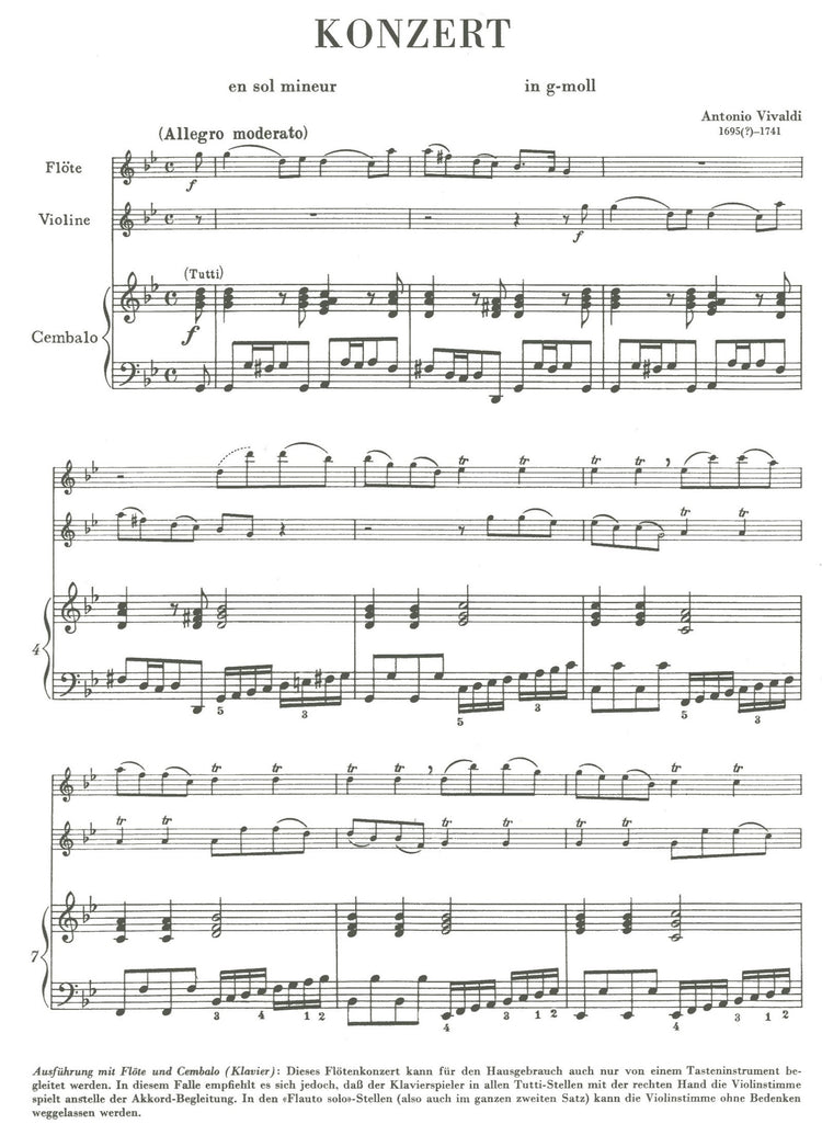 *Baroque Double Concerto for recorder/flute and violin and basso continuo*. Includes extensive introductory notes in German.