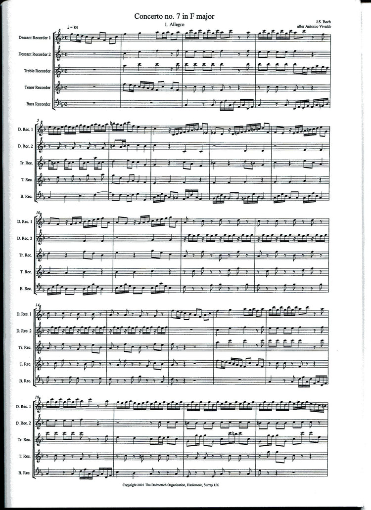 *Traditional Baroque Concerto* arranged for SSATB recorder choir.