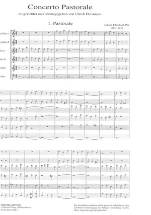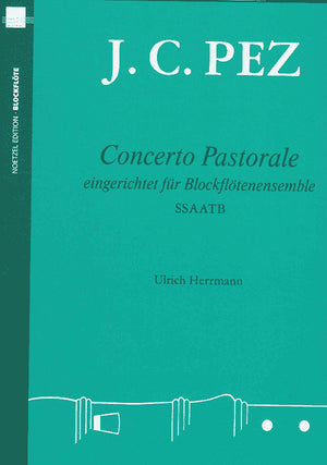 This edition of the Concerto Pastorale by Johann Christoph Pez (1664-1716) - originally composed in F major for two (alto) recorders and strings - has been arranged for a recorder sextet and transposed up a fifth. With the excepton of the two solo soprano parts, each of the other parts can be performed by more than one player. Even a contrabass recorder can be used to reinforce the bass line.