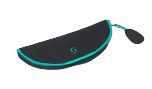 Black cotton bag for a descant recorder that separates into 2 parts.