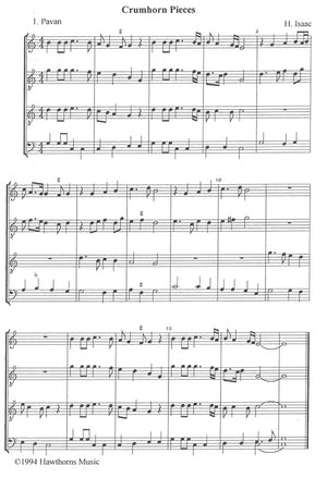 This is a collection of pieces chosen because they work well on crumhorns, but (so far as it is possible to know) none of them was written with crumhorns in mind. The pieces are equally suitable for a recorder consort. Greg Lewin