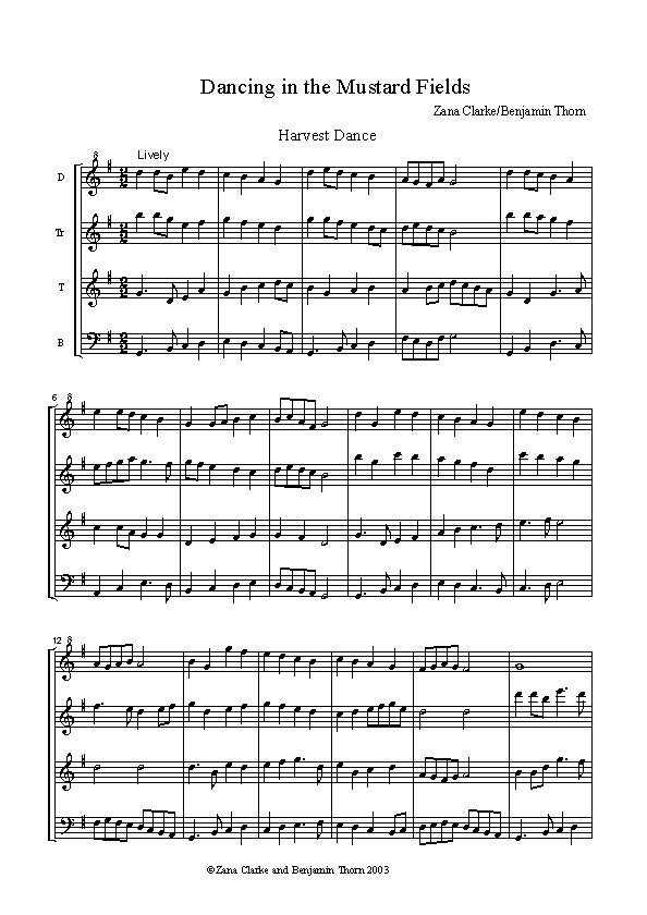 Dancing in the Mustard Fields is the fourth collaboration between Benjamin Thorn and Zana Clarke. The three contrasting movements of this dance suite; Harvest Dance, Mustard Fields and Star Gigue are highly lyrical, with clear rhythms this is festive writing reminiscent of the folk and rustic. The quartet is highly accessible and will provide fun music making for players at levels 2-3.