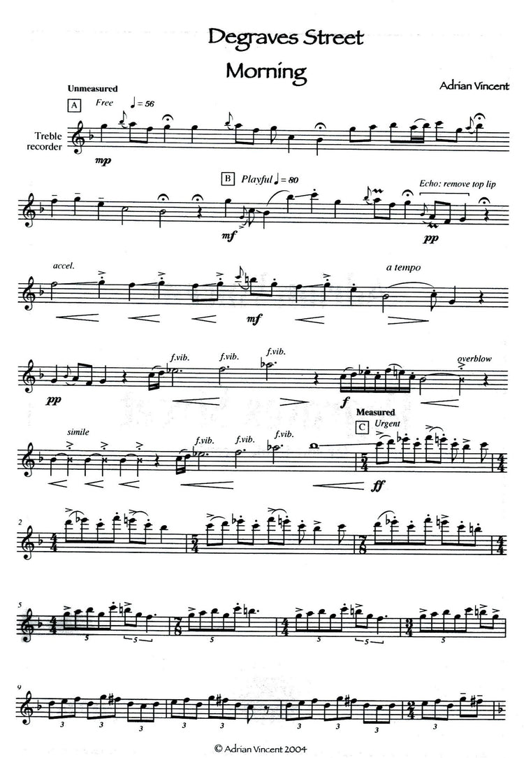 OMP168 Adrian Vincent Degraves Street for Solo Treble Recorder