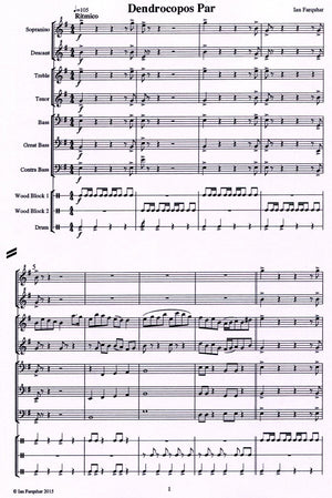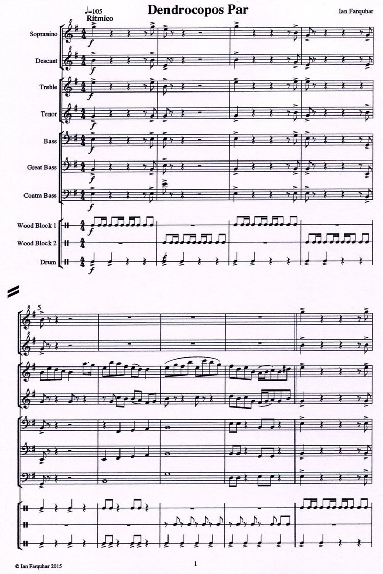 *Contemporary Composition for Recorder Septet* with High and Low Wood Blocks & Drum.
