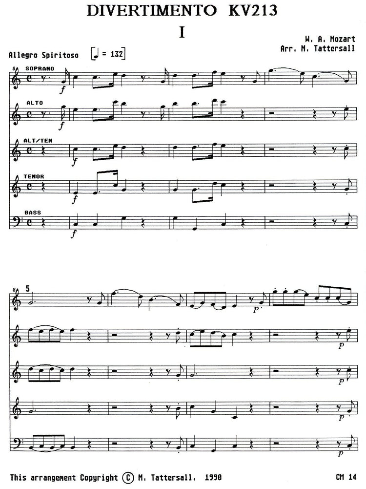 Instrumentation: Descant - 2 Trebles - Tenor - Bass