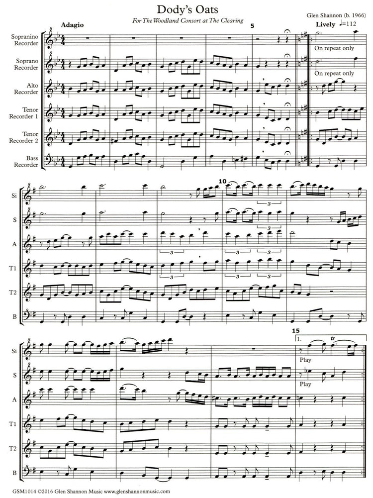 *Contemporary Recorder Sextet.* Glen Shannon has had great success with his compositions and is now publishing music. The pieces are all beautifully presented and interesting repertoire and are exceptionally good value both from the perspective of price and quality of the works.