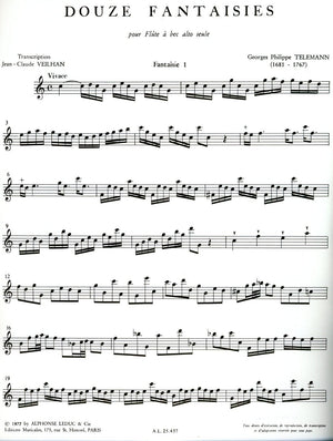 Douze fantaisies pour flute a bec alto seule Twelve Fantasies for Solo Treble Recorder