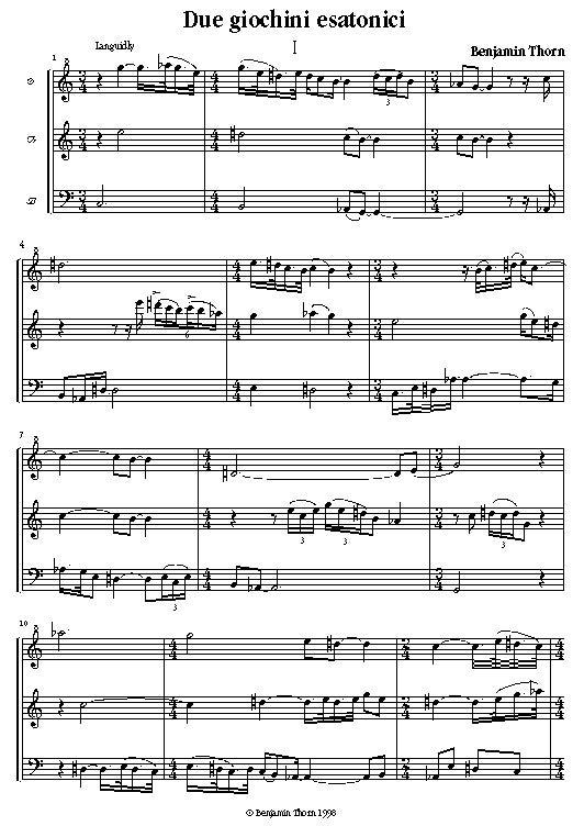 Two short movements, the first marked "languidly: an the second scherzetto, based on a hexatonic scale. Much rhythmic interest and interplay.
