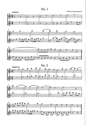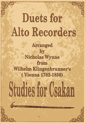 Duets for Alto Recorders. Arranged by Nicholas Wynne from Wilhelm Klingenbrunner's Studies for Csakan (Vienna 1782 - 1850)