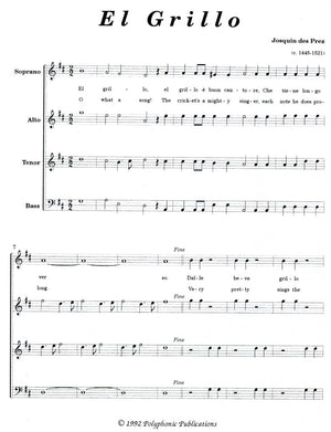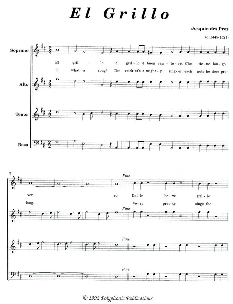 *Renaissance Madrigal Arrangement*. Famous cricket madrigal by Josquin arranged for recorder quartet. Includes text.