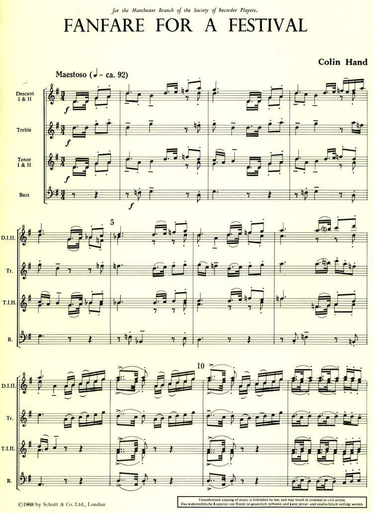 *Contemporary Work* written for the Manchester Branch of the Society of Recorder Players.