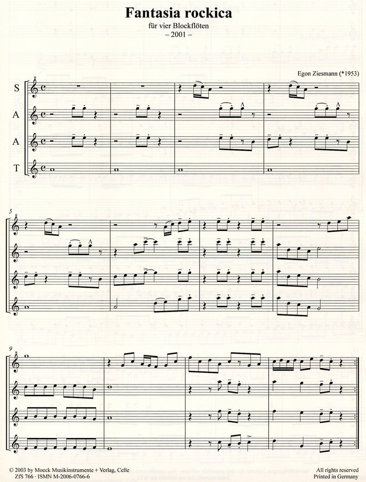 *Contemporary Fantasy* for four recorders. Includes comprehensive biographical information about the composer & performance notes in German, French & English.