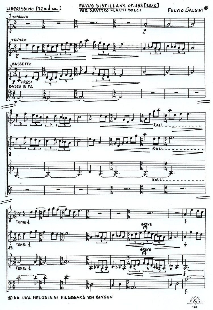 Instrumentation: Descant - Tenor - Bass - Contrabass
