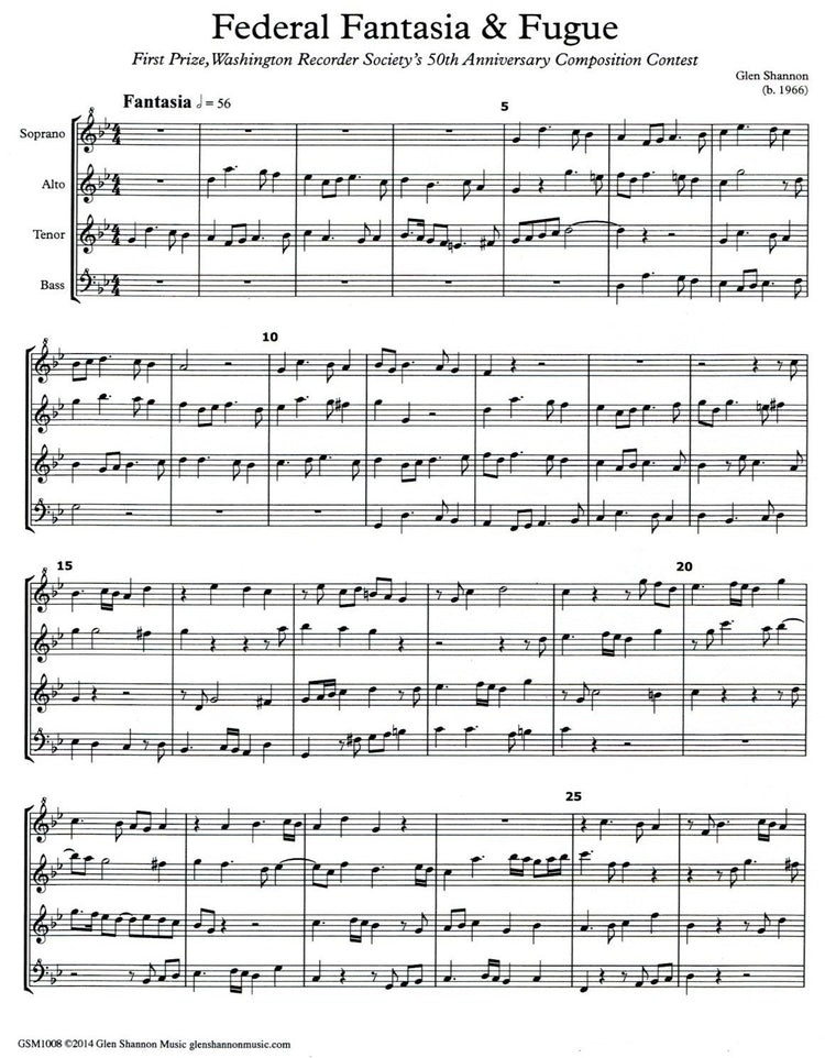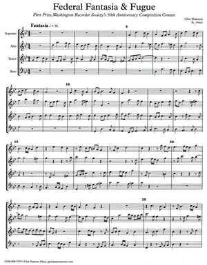 *Contemporary Fantasia & Fugue.* This composition won the First Prize in the Washington Recorder society~~~~~s 50th Anniversary Composition Contest. A page of brief introductory notes is included.